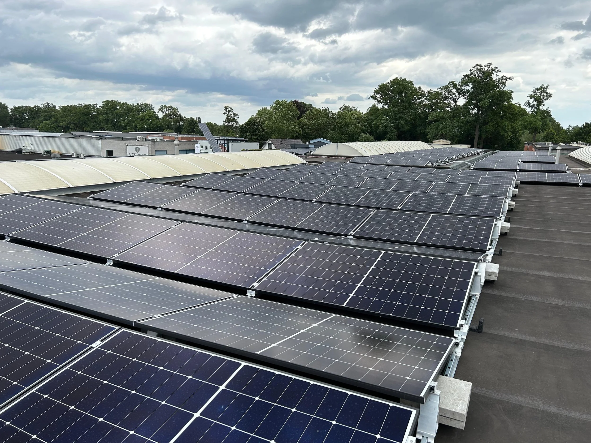 Ideaal voor bedrijfspanden en loodsen met grote dakoppervlaktes. Wij plaatsen panelen in de optimale hellingshoek voor maximaal rendement, zonder de dakbedekking te beschadigen.